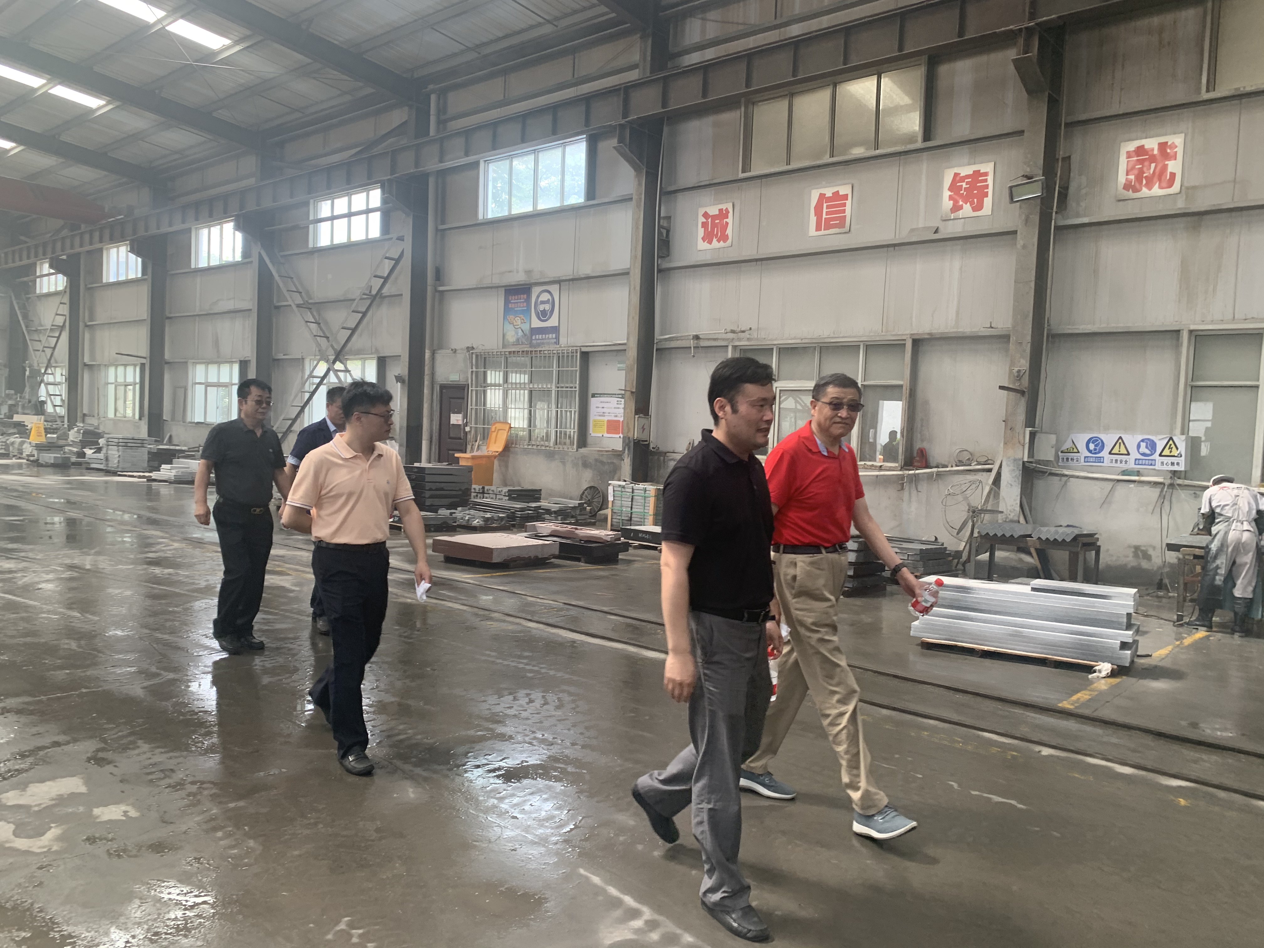 5月21日上午,在總經理程熊飛的陪同下,集團領導參觀廠區實地察看了公司生產車間、物料倉庫及周邊環境,全面了解天壽石業經營、安全等情況,并就公司各方面生產環節及公司整體規劃方面提出自己的各類問題和見解建議,程熊飛總經理現場作出詳細解答,并對公司未來發展計劃及前景作了進一步補充說明。